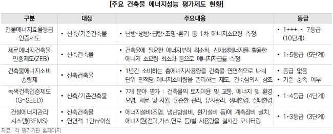 ¢Â°Ç¹°ÀÇ Ä£È¯°æ¼º °È¿Í °ü·ÃµÈ Á¤Ã¥Àº Áö¼ÓÀûÀ¸·Î °ÈµÉ °ÍÀ¸·Î Àü¸Á ¡Ý½ÅÃà½Ã Á¦·Î¿¡³ÊÁö°ÇÃ๰(ZEB)¿¡ °üÇÑ ±ÔÁ¦´Â 2020³âºÎÅÍ º»°ÝÀûÀ¸·Î ½ÃÇàµÇ¾î 2050³â¿¡´Â ¸ðµç °Ç¹°¿¡ Àû¿ë - Á¦·Î¿¡³ÊÁö°ÇÃ๰À̶õ °ÇÃ๰¿¡ ÇÊ¿äÇÑ ¿¡³ÊÁöºÎÇϸ¦ ÃÖ¼ÒÈÇÏ°í ½Å¿¡³ÊÁö ¹× Àç»ý¿¡³ÊÁö¸¦ Ȱ¿ëÇÏ¿© ¿¡³ÊÁö ¼Ò¿ä·®À» ÃÖ¼ÒÈÇÏ´Â ³ì»ö°ÇÃ๰(³ì»ö°ÇÃ๰Á¶¼ºÁö¿ø¹ý Á¦2Á¶ Á¦4È£) - Á¦·Î¿¡³ÊÁö°ÇÃ๰ÀÎÁõÁ¦µµ´Â °ÇÃ๰¿¡ ÇÊ¿äÇÑ ¿¡³ÊÁö ºÎÇϸ¦ ÃÖ¼ÒÈÇÏ°í ½Å・Àç»ý¿¡³ÊÁö¸¦ Ȱ¿ëÇÏ¿© ¿¡³ÊÁö ¼Ò¿ä·®À» ÃÖ¼ÒÈ ÇÏ´Â ³ì»ö°ÇÃ๰À» ´ë»óÀ¸·Î ¿¡³ÊÁö ÀÚ¸³·ü¿¡ µû¶ó 1~5µî±Þ±îÁö ÀÎÁõ ºÎ¿© *1µî±Þ(¿¡³ÊÁöÀÚ¸³·ü 100% ÀÌ»ó), 2µî±Þ(80~100%), 3µî±Þ(60~80%), 4µî±Þ(40~60%), 5µî±Þ(20~40%) -Á¦·Î¿¡³ÊÁö°ÇÃ๰À¸·Î ½Ã°øÇÒ °æ¿ì ¿ëÀû·ü, ¼¼Á¦, ´ëÃ⠵ Àμ¾Æ¼ºê Á¦°ø